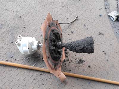 傳統(tǒng)的雷達(dá)探尺從高爐上取下后的狀況,嚴(yán)重積灰,新產(chǎn)品裝上后短時間內(nèi)就無法使用。
