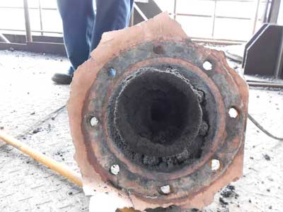 傳統(tǒng)的雷達(dá)探尺從高爐上取下后的狀況,嚴(yán)重積灰,新產(chǎn)品裝上后短時間內(nèi)就無法使用。